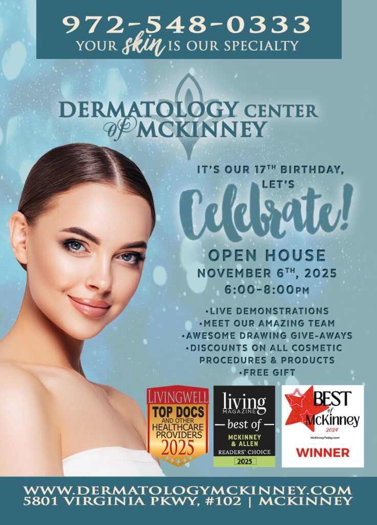 We are excited to announce our upcoming Open House at the Dermatology Center of McKinney! Join us for an engaging event where you can tour our state-of-the-art facility, meet Dr. James Ralston and our dedicated team, and learn more about the latest advancements in dermatologic care. Attendees will have the opportunity to explore our comprehensive range of medical and cosmetic dermatology services, enjoy exclusive event specials, and participate in informative demonstrations. We look forward to welcoming both new and existing patients for an evening of education, connection, and community.